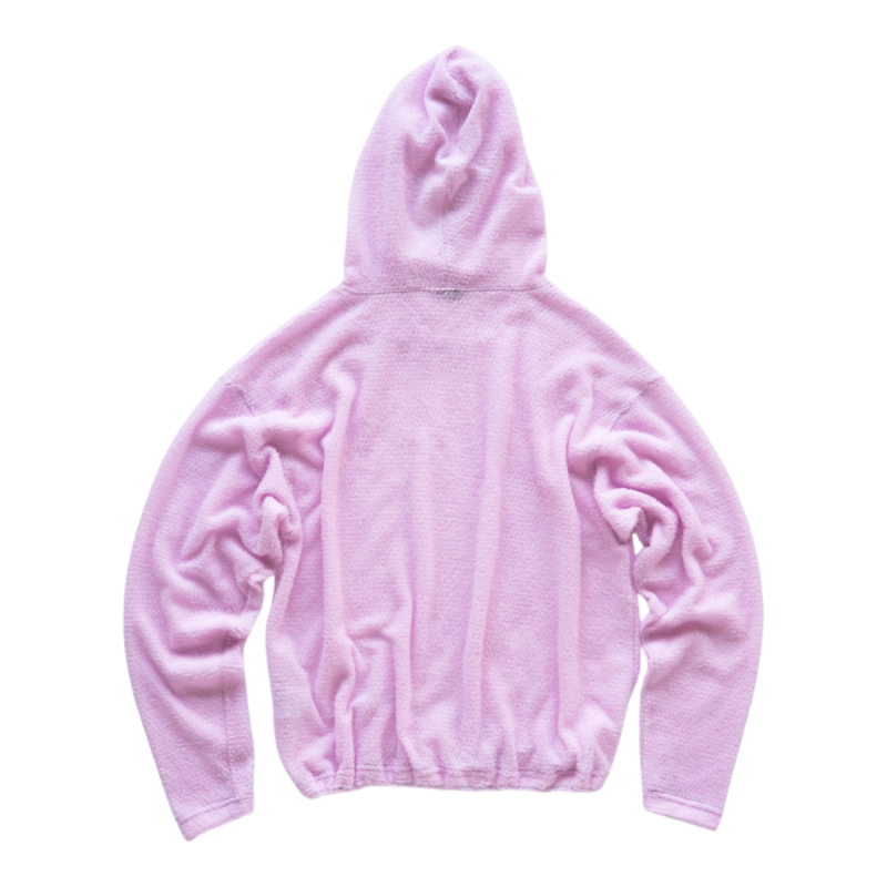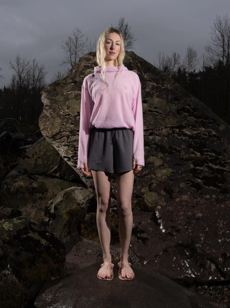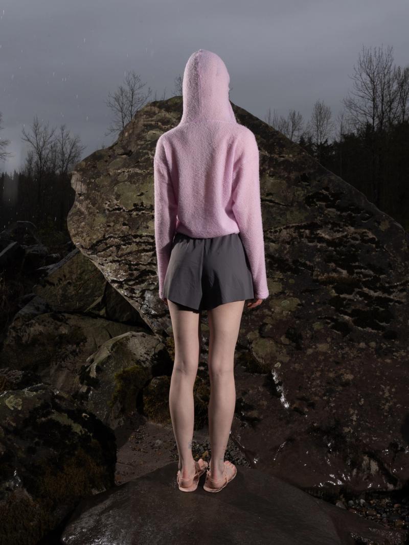 The Shag Hoodie v2.0 is cut for all-around comfort—for trail and life. Compared to the original version, the v2.0 features a boxier fit, similar to the Shag Sweater, for added versatility and ease of movement. Updates include the removal of the front pockets, prioritizing simplicity and reducing weight even further. The hood and hem adjustments have been upgraded with a new lock system, allowing for easier one-handed cord adjustment, and the hood offers a better cinch fit around the face for improved protection.