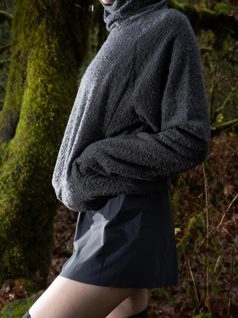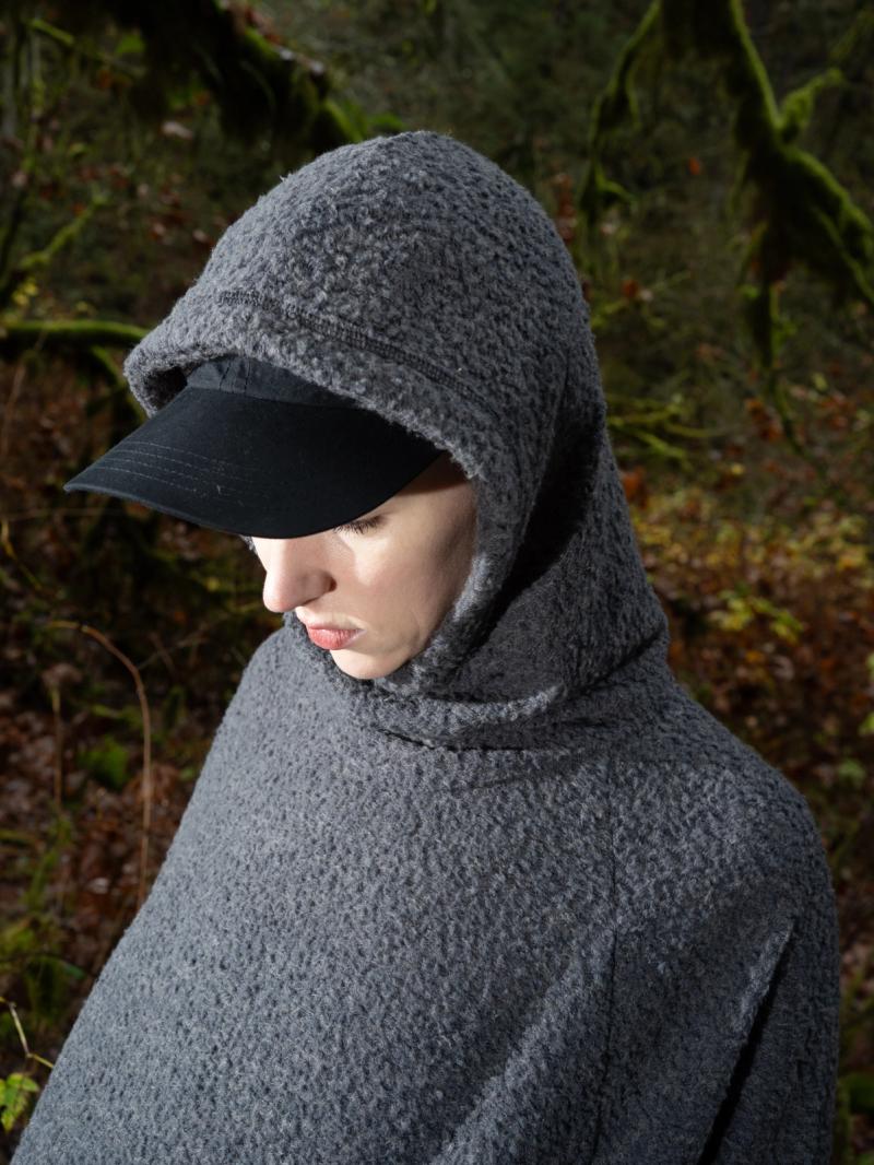 Still kinda shaggy looking, weighs next to nothing. Like the original gnuhr Shag Sweater in Polartec Alpha Direct 60, it’s ultralight, minimal and simple thermoregulation. Ideal active insulation in cooler climates. Wear with a light base layer on the move without overheating. Wear underneath a shell to trap heat. The Wool blend fabric offers the benefit of more warmth and odor resistance. The hood has an extra-large opening for comfort and visibility, and the hem adjusts easily to fine-tune the fit. With the addition of hand rest pockets for cold weather.
